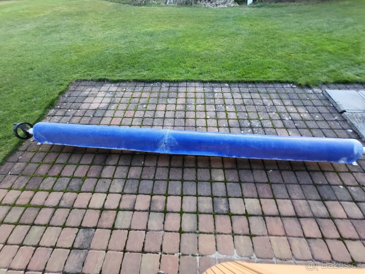 Bazénový naviják s kolem pro pevné uchycení k podlaze šířka 2,7 – 4,4 m ... cena 4.000,- Kč + zdarma plachta 7,3m x 3.6m