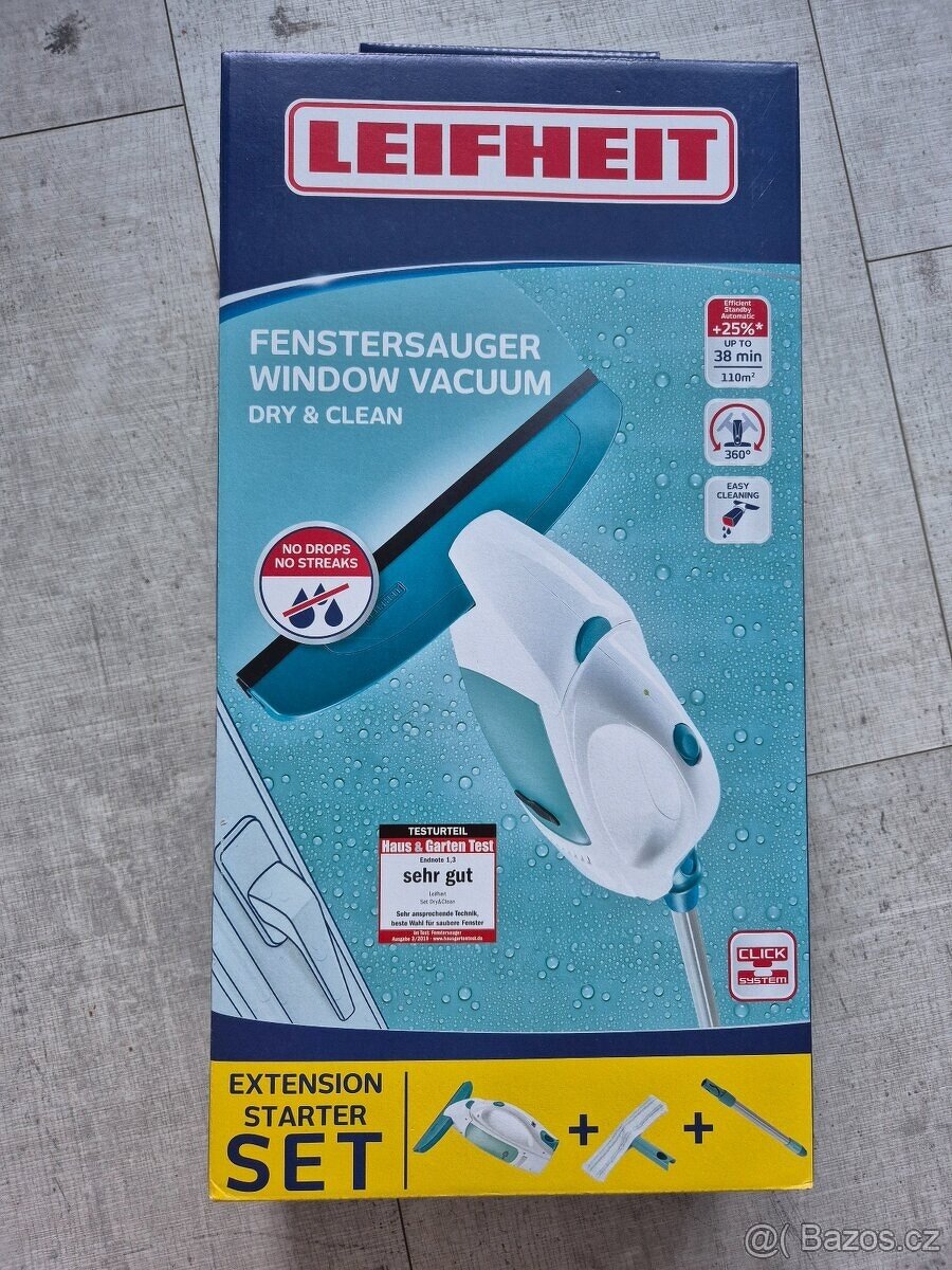Nový Leifheit Window Cleaner + tyč 43 cm + mop vysavač na okna set na čištění oken beze skvrn