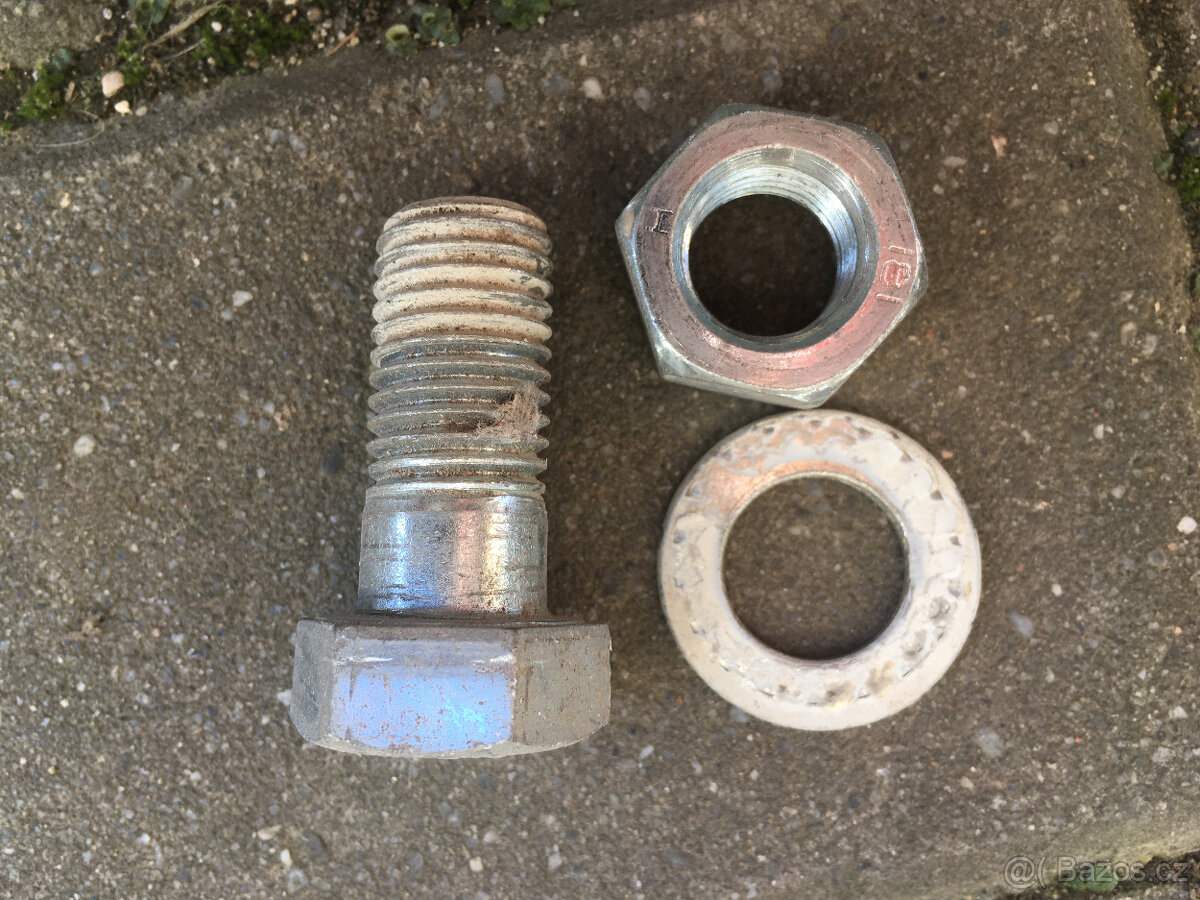 Nabízím šrouby M16x35 DIN7990 s maticemi a podložkou 17x30x2. Cena za šroub 5 Kč, matice 1,5 Kč a podložka 0,5 Kč. Počet v desítkách.