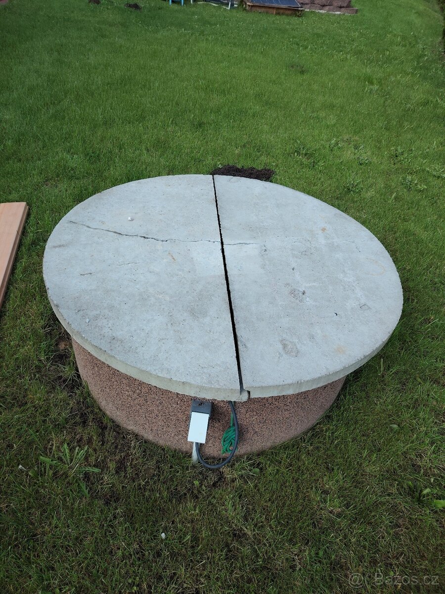 Betonový studniční poklop - [11.11. 2025]Půlený, s otvorem na ruční pumpu. Průměr 130 cm, výška 8 cm, na klasické 100 cm skruže.