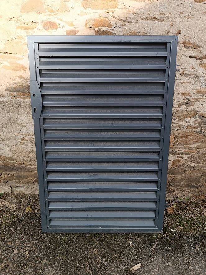 Branka hliníkové lamely 1100x1500 - [12.11. 2025]Branka levá ,ocelový rám zinkovaný , hliníkové šikmé lamely lakované Antracit RAL7016. Vrácené zboží z prodeje. Výprodejová cena včetně příslušenství ( klika zámek panty). rozměr 1000x1450 určeno pro montážní otvor 1100x1500. Původní cena 12.700 Kč