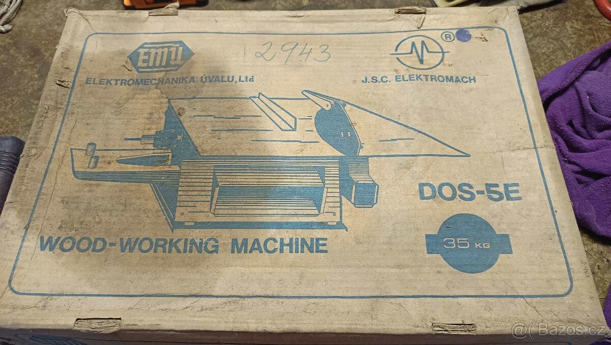 Prodám dřevoobráběcí stroj DOS-5. Řeže do síly 30mm, hobluje do šíře 160mm, frézuje drázky do šíře 10mm a hloubky 20mm, vrtá do 10mm a hloubky 20mm, soustruží materiál o průměru 26-70mm a max. délky 400mm. Nepoužitý. Pozůstalost po dědovi.