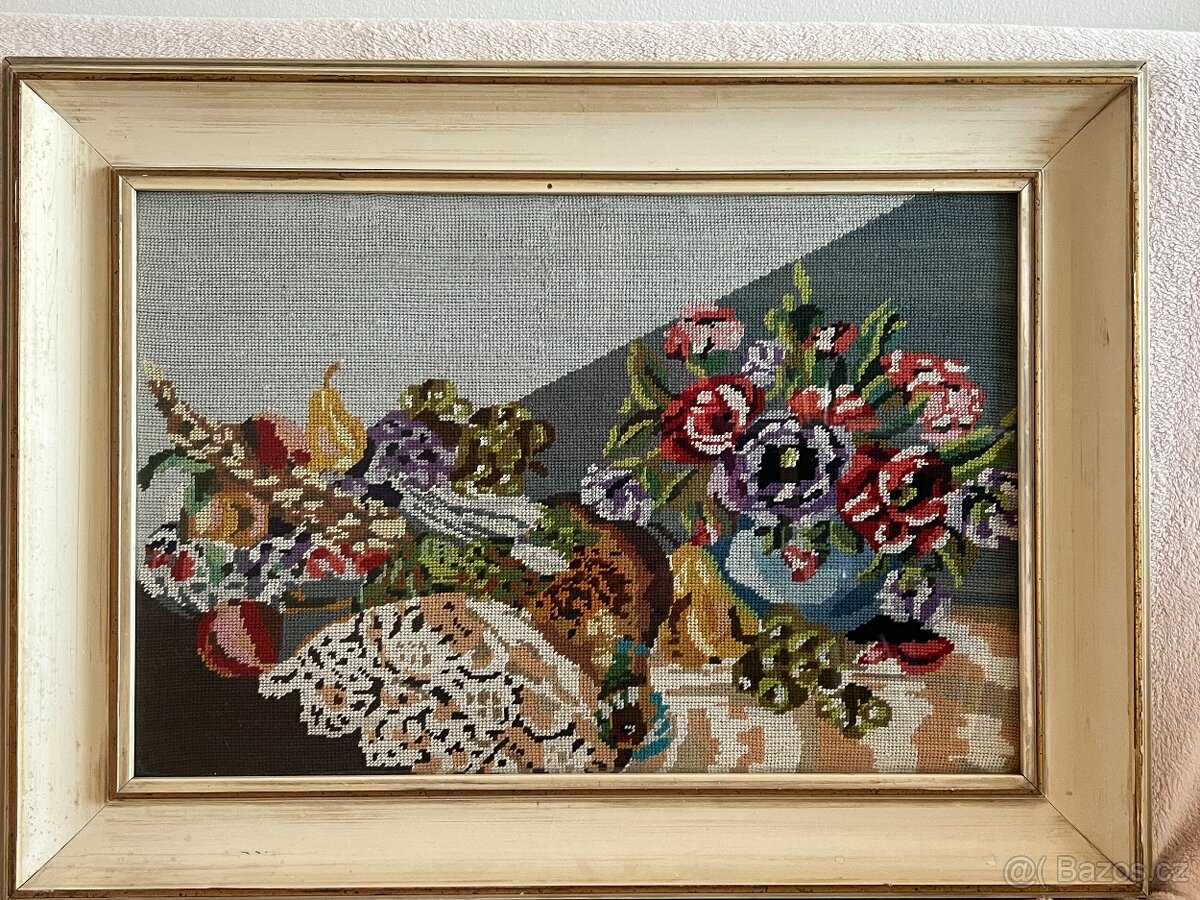 Prodám ručně vyšívaný obraz "zátiší"