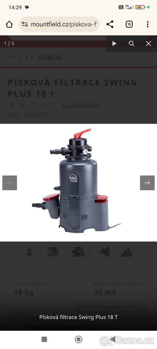 písková filtrace. Je to typ SWING PLUS 14 - nová - [26.11. 2025]písková filtrace. Je to typ SWING PLUS 14 - nová písková filtrace. Je to typ SWING PLUS 14. Je rozbalená, ale nepoužitá. Je pro nadzemní bazén. Původní cena 6 800,-, záruka je do 9.9.2026 Písková filtrace pro nadzemní bazény Návod k instalaci, údržb ...