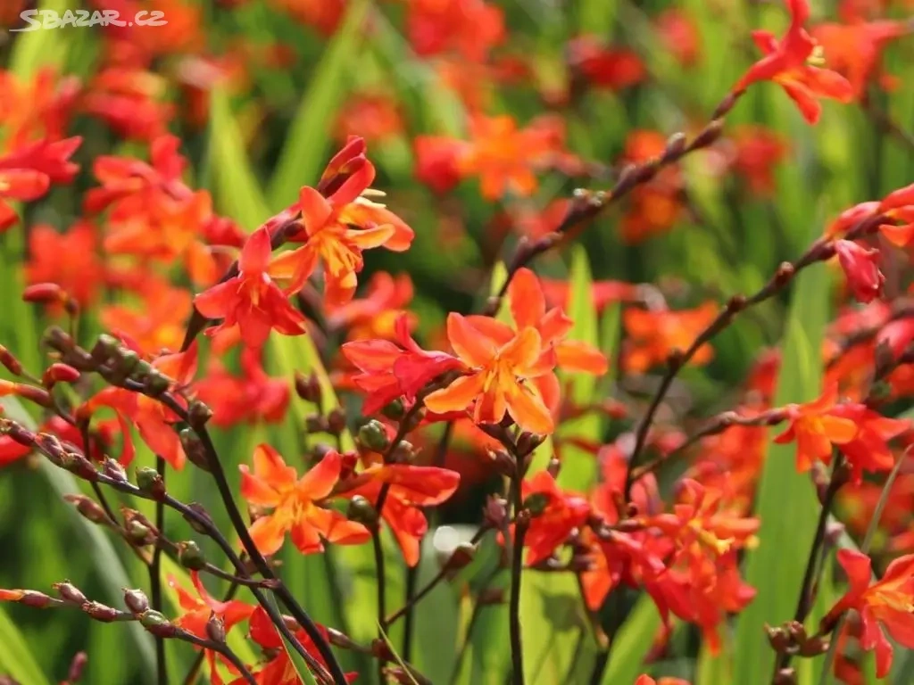 Prodam cibulky Monbrécii - klenuté stonky květů nesou množství červených poupat. Od poloviny do konce léta se vyvinou v dlouhotrvající a intenzivní tmavě oranžové trubkovité květy, které mají žluté hrdlo označené načervenalými skvrnami. Výška 45-60 cm. Dodáváme hlízy bez zeminy, jsou mrazuvzdorné. Cena 15 kusu za 100,- Kč.