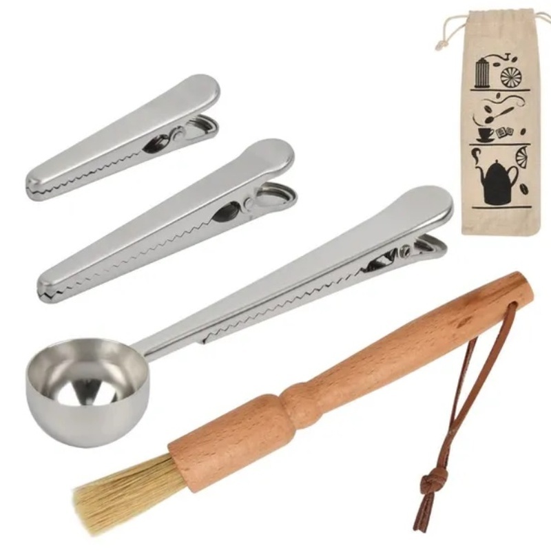 Sada 4 ks - na kávu štětce, odměrky a těsnících klipsů.