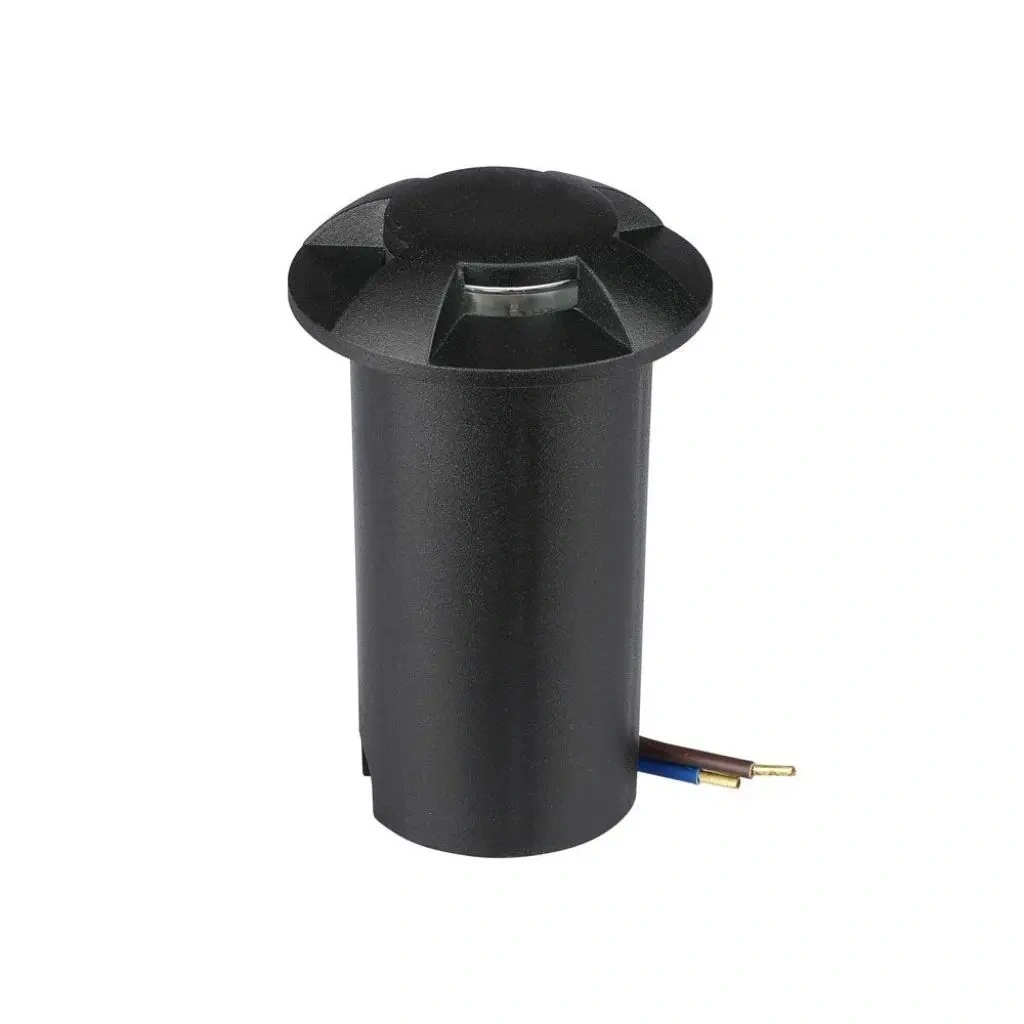 V-TAC VT-1171 Zapuštěné LED bodové světlo na schody 12V 1W 4 paprsky teplá bílá 3000K kulaté v černém hliníku IP67