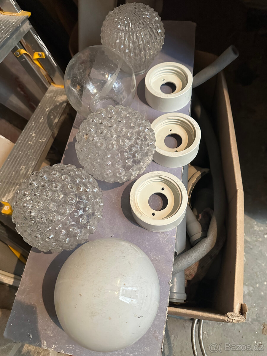 Nabízíme k prodeji skleněné koule 1ks/ 80,-Kč, 1x průhledná, 3x strukturovaná, 1x bílá. Celkem 5 ks.