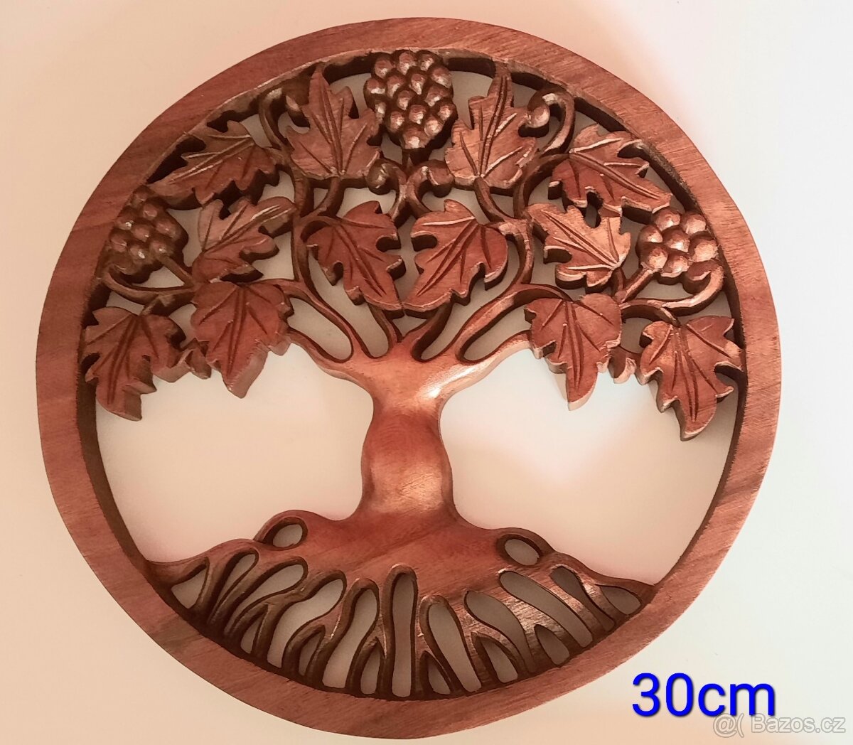 Prodám originální dřevěnou řezbu ,strom života (motiv hrozna),30cm průměr, 1300kč