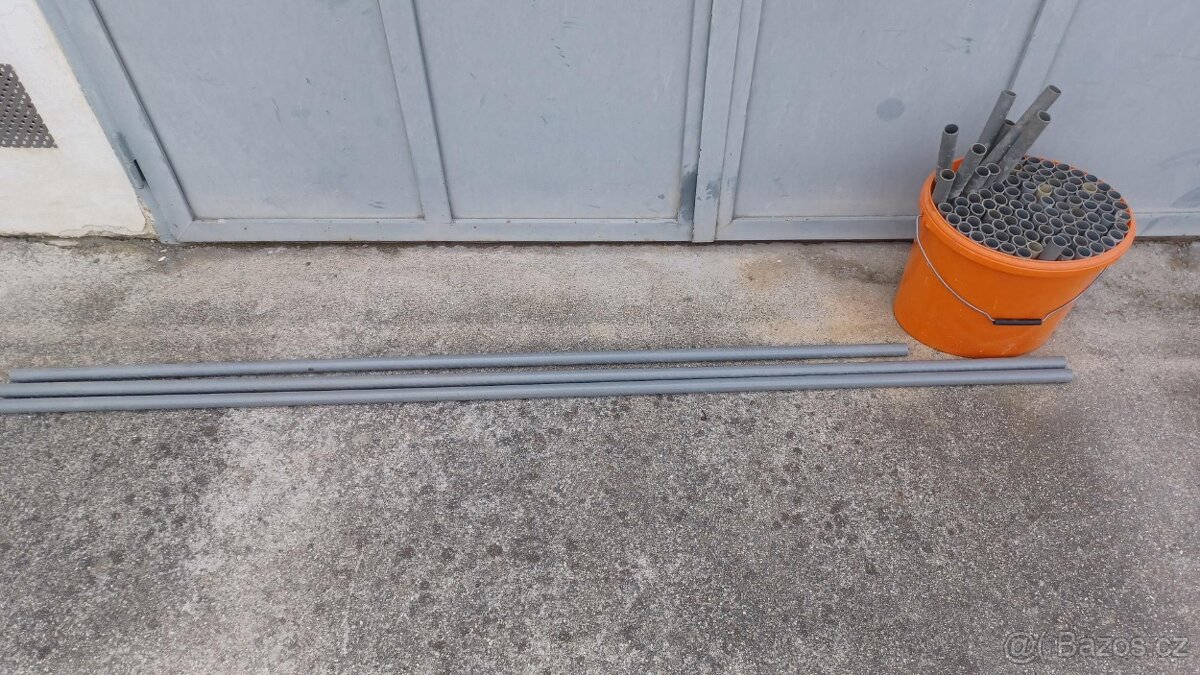 Prodám PVC chráničky spínacích tyčí bednění + 8 ks zátek, venkovní průměr 25 mm, 2 ks dl. 2 m, 1 ks dl. 1,7 m, 96 ks nařezané na dl. 30 cm; cena celkem = 100 Kč