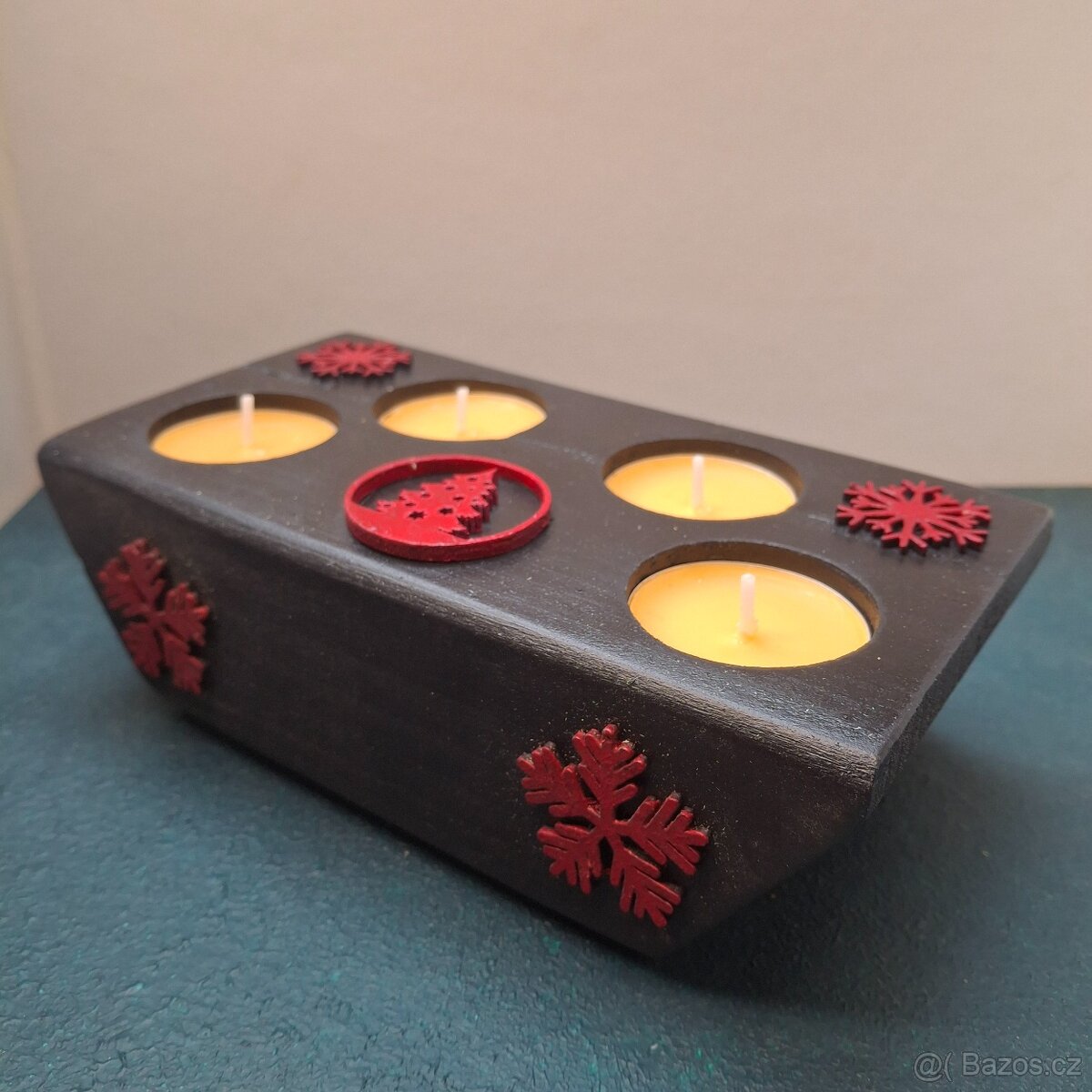 Vánoční svícen. Šířka 18,5cm,výška 6cm,hloubka 9,5 cm.