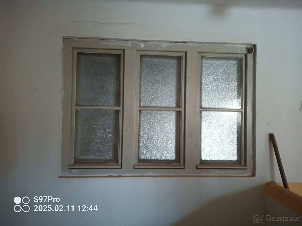 Prodám prvorepublikove dřevěné trojokno 166x116cm .