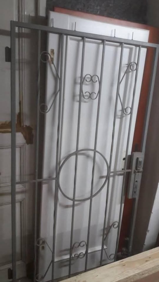 Prodáme tuto železnou mříž vhodnou k zadělání do dveří, miry 100x200cm, jsou k tomu protikusy pantů k zazdění. osobní odběr v Lustenicich