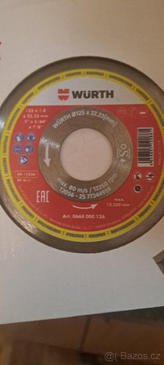 Diamantový řezný kotouč - [14.12. 2025]od Wolbru (Rakousko), pro profi použití,pro suchý i mokrý řezání, rozměr 125x22,23mm nebo 230x22,23mm. Řeže beton, železobeton, žulu, mramor,atd. Větší je za 300. Mám 3 ks. Prosím pouze volat.