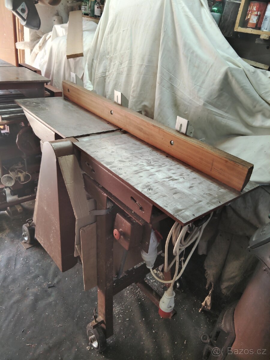 Prodám menší srovnavačku 3x nůž šiřka 300 el.motor3F,2kw naklopne pravítko Uber trisky 5mm váha 135kg posun na kolečkach