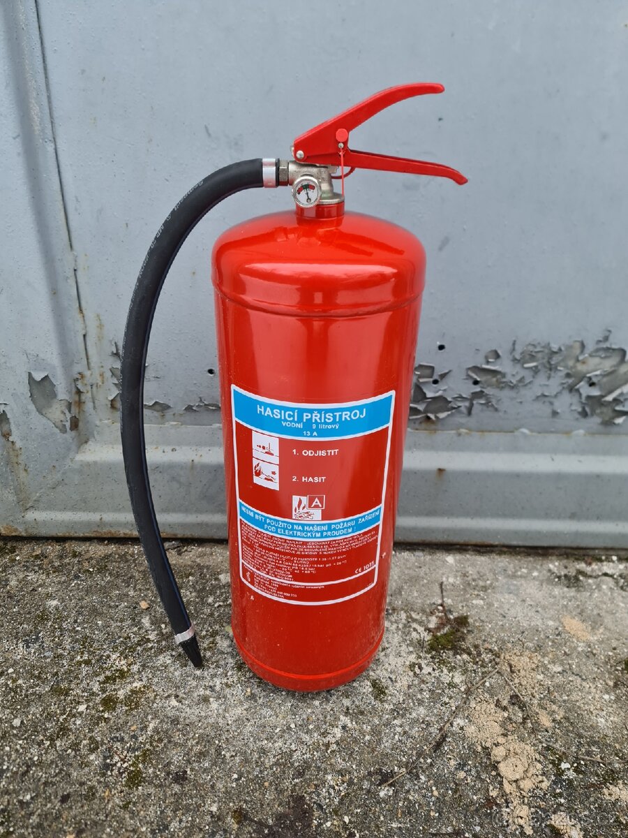 Prodám vodní hasicí přístroj 9L. Tlak v pořádku, plně funkční. Mám více kusů.