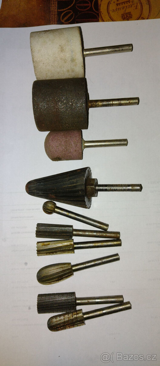 Prodám technické frézy viz foto, cena od 40,-Kč za kus. Možno i brousky na stopce průměr 6mm.