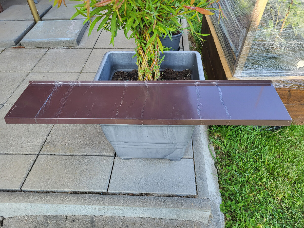 Nabízím k prodeji venkovní plechové parapety o síle plechu 1.2 mm s hnědým nástřikem + plastové koncovky.