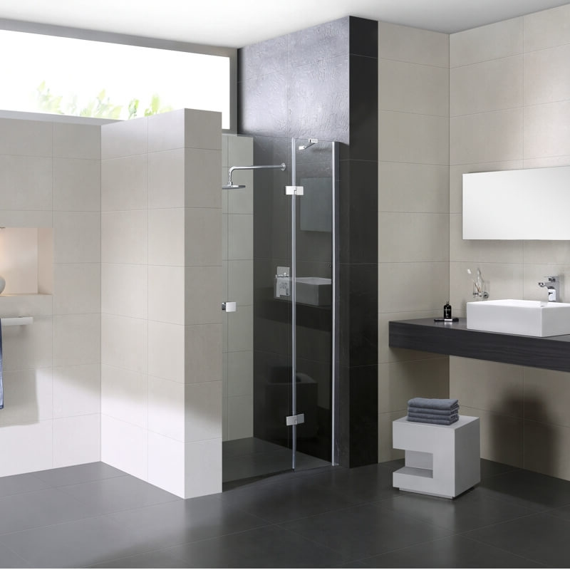 Výška 190 cm, 6 mm bezpečnostní čiré sklo s povrchovou úpravou Easy Clean, chromové profily, chromové panty.