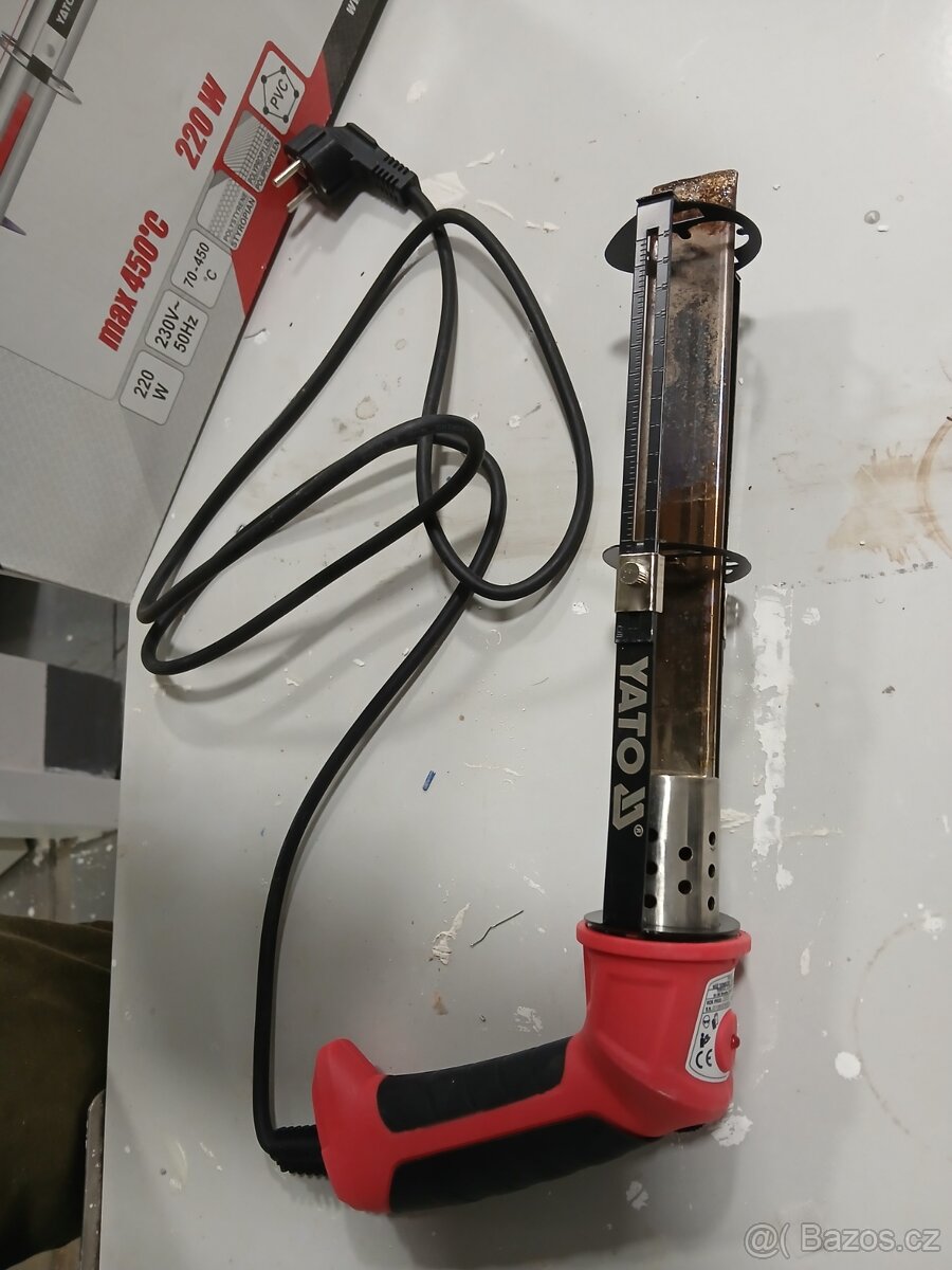 Prodám termický nůž na EPS nebo XPS YATO YT-82190 YATO, 230V, 220W, 70°-450°. Byl použitý na jedné stavbě při pokládce podlahového polystyrénu, je plně funkční, už pro něj nemám využití. Preferuji kontakt e-mailem.