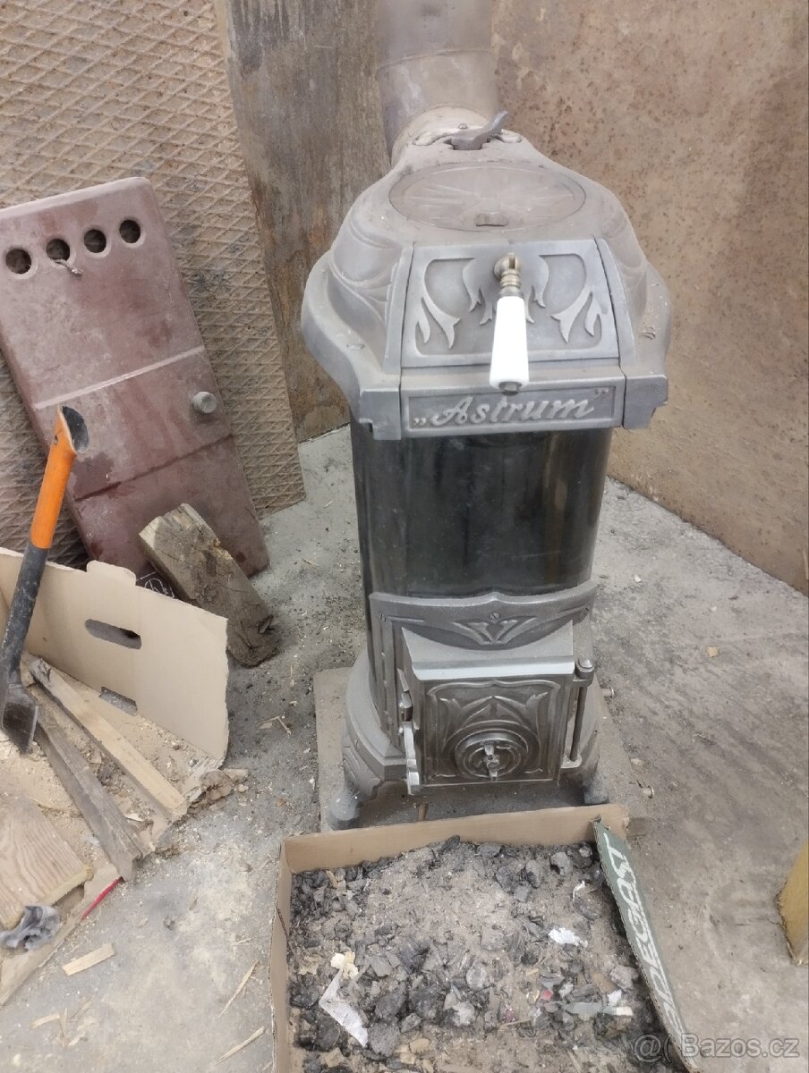 Prodám secesní litinová kamínka Astrum. Byly v obytném voze z USA Dodge Recreation vehicle by Zagelmeyer z roku 1926. Teď jsou v dílně. Krásný stav, topí jak peklo, ale na dílnu jsou malá. K dispozici je i odpovídající litinová zděř do stěny ve stejném stylu. Průměr kouřovodu 110mm