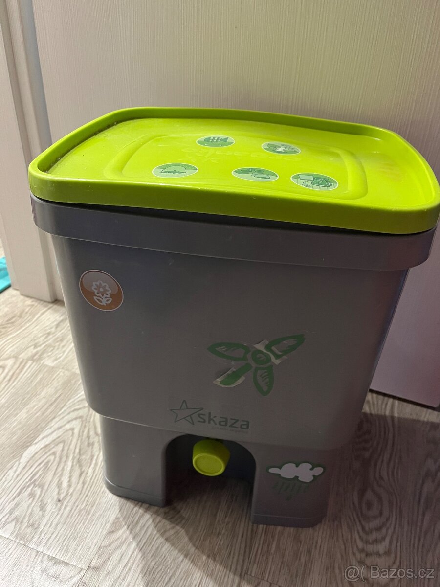 Komposter na domácí odpad. Nevyužijeme, protože jsme si pořídili králíčka.