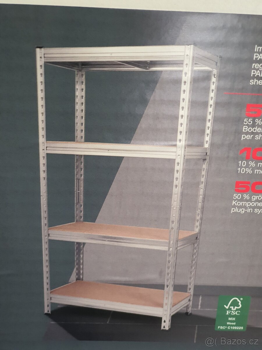Stabilní, pozinkovaný regál s velkou nosností 250kg zatížení na 1 polici, 1000 kg zatížení na celý regál. Jednoduchá montáž.