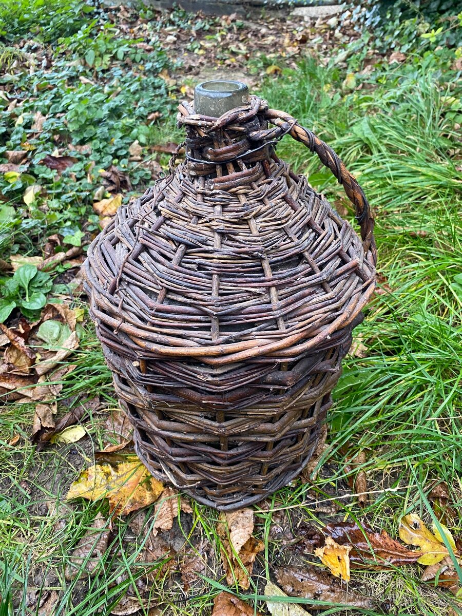 2x Starý demižon v luxusním stavu - i k používání. - [31.10. 2025]Opletený vrbovým proutím. Malý je výšky 26 cm, cena 400,- . Velký je výšky 45 cm, oba jsou uvnitř čistý - používán normálně na víno. Cena 900,- . Dohromady 1200,- nebo i výměnou za něco na stará vozidla - veterány (auto/motocykly), plechovky od oleje ...