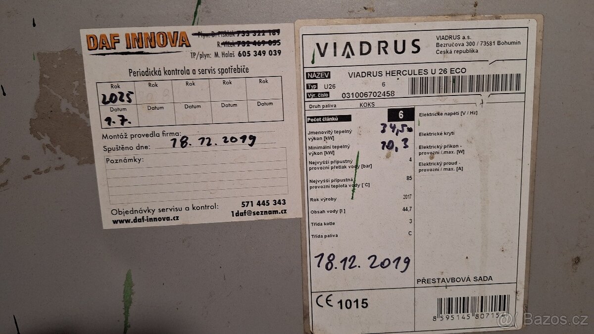 Prodám prřestavbovou sadu na viadrus u26 po revizi kotle letos kotel teče mám novy jedna se o štitek + vložky na 6 članků vykon max 34 kw