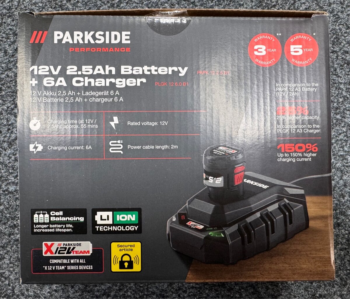 Prodám Parkside Performance Akumulátor 2,5 Ah PAPK 12 2.5 B1 + nabíječka PLGK 12 6.0 B1