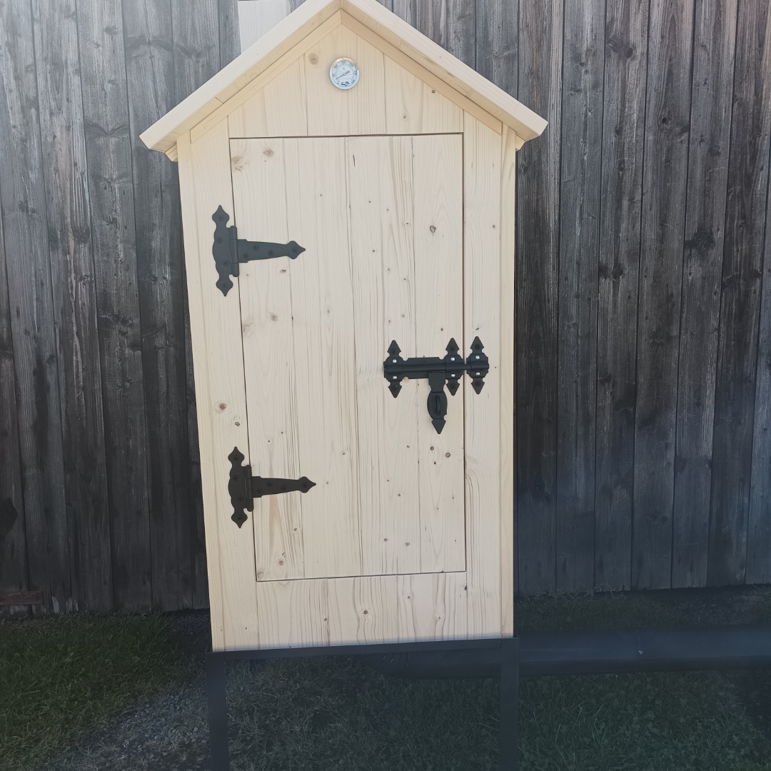 Zdravím, prodám novou dřevěnou udírnu o rozměrech v120/š60/h60 cm.Objem udící komory je 300 litrů. Udírna má dvě patra, šest tyčí a osm háku na uzení.Cena udírny bez podstavce a topeniště je 6500 Kč.Podstavec je vysoký 40 cm, topeniště s klapkou do roury je o rozměrech d40/š30/v30 cm,cena topeniště s podstavcem je 3400 Kč.