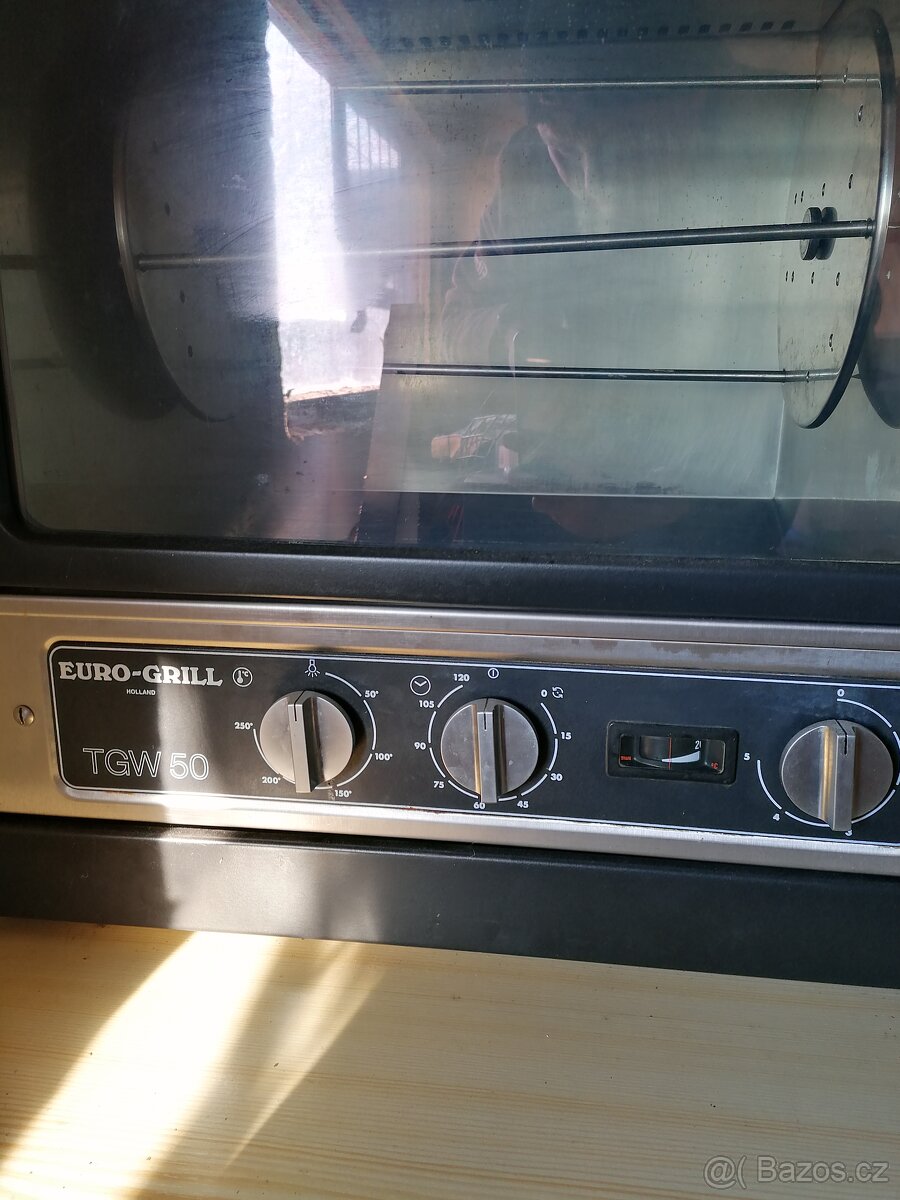 Prodám profi elektrický gril na 6kuřat,špízy, gyros. Možnost přihřívání již hotových pokrmů. Cena 5000,-Kč, Původní cena 23000,-Kč Důvod prodeje. Nevyužitý.