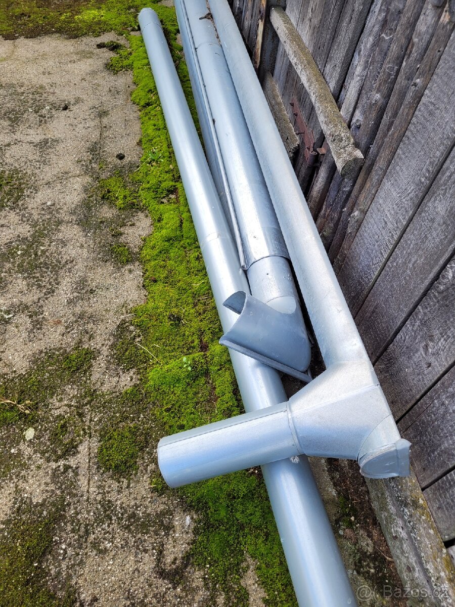 Prodám jen chvíli namontován žlab 150 mm 4x cca 500 cm, 1x 400 cm. Svod. 1x 120 mm cca 500 cm a 1x 150 cm. Vše jak je na foto. Možná možnost dovozu do pár km.