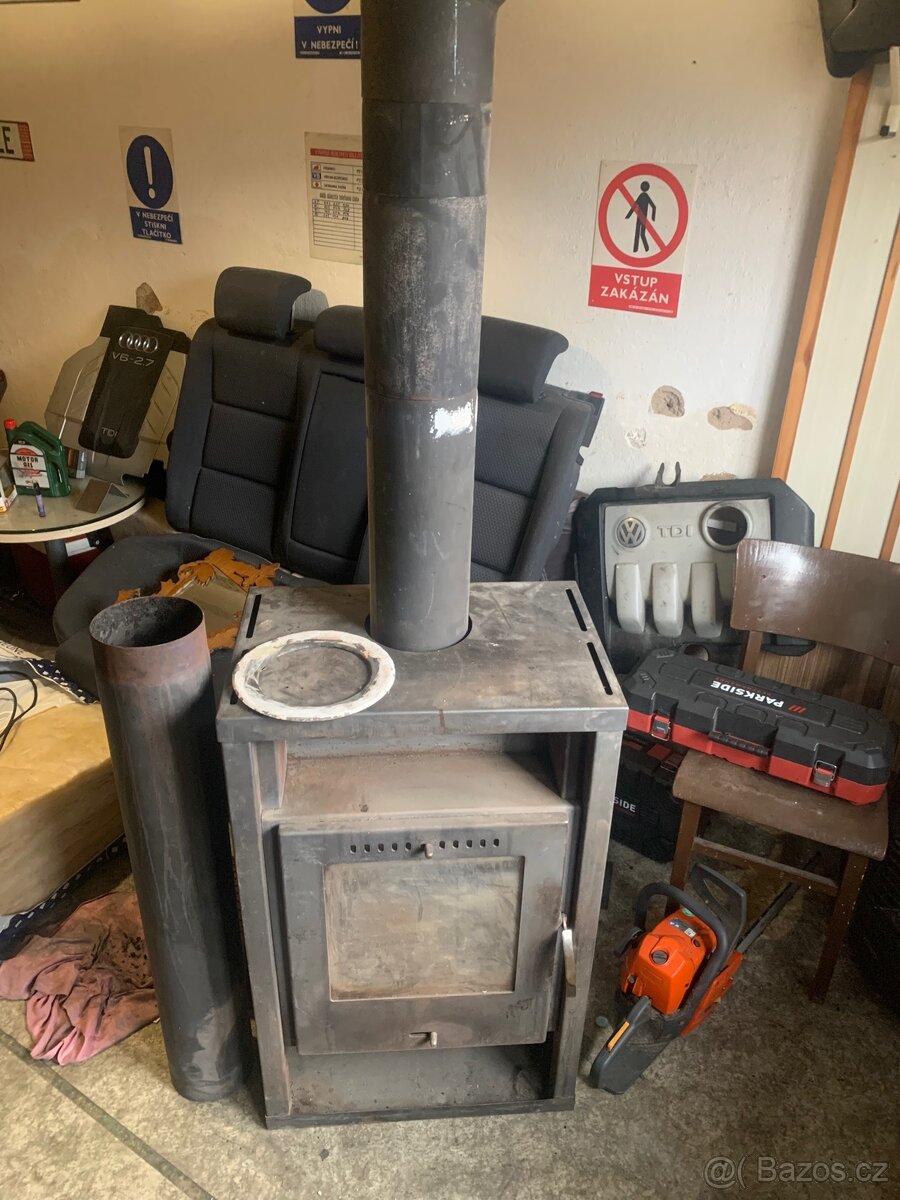 Plně funkční krbová kamna o výkonu 10 kW. Součástí jsou i kouřovody (obyčejné, ne silnostěnné). Jedinou vadou jsou popraskané boční šamotové desky, spodní šamot je v pořádku.