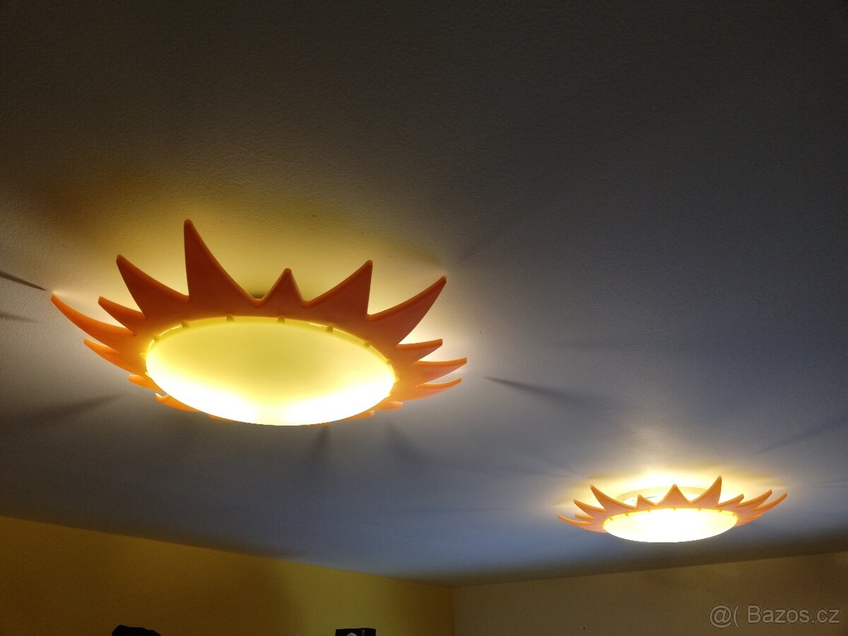Prodám stropní svítidlo do dětského pokoje. Použité. 2ks sluníčko, 2 ks rampa. Cena 150 Kč kus.Dohromady za 500 kč.