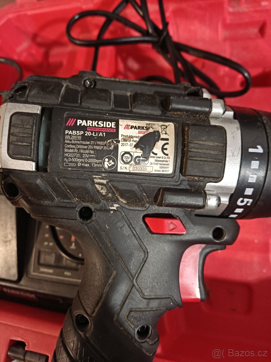 Prodám akumulátorovou vrtačku Parkside Performance 20 V (PABSP 20-Li A1) v kufru.