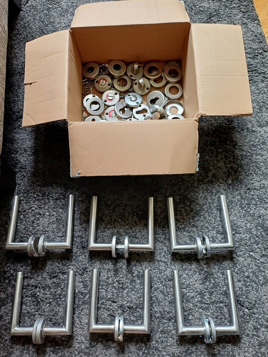 Kování na dveře 6 ks, cena celkem 450 Kč.