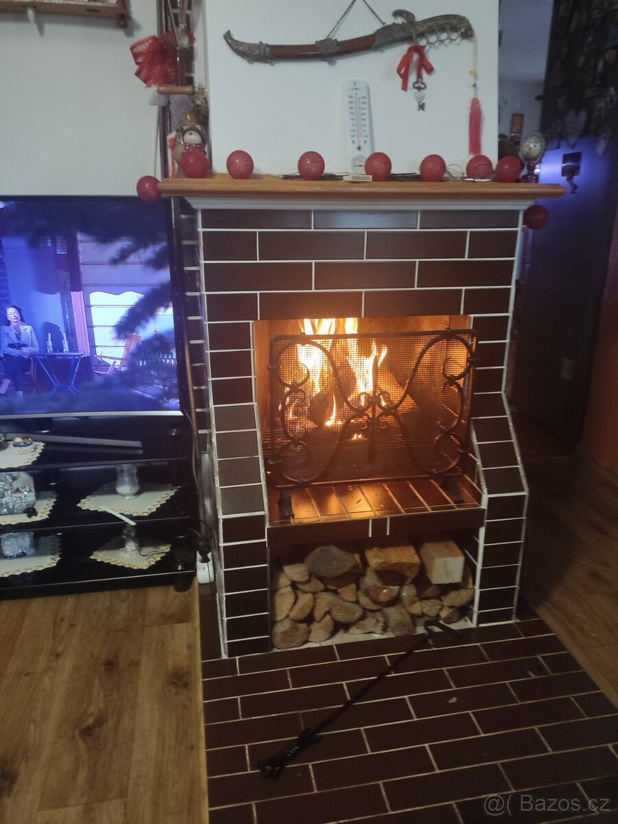 Prodám otevřenou krbovou vložku na obezdění s kourovodem šíře 55cm výška 100cm a hloubka30cm z 5mm materiálu+rošt a k vložce přidám kovanou mřížku a plus římsu z bukového dřeva