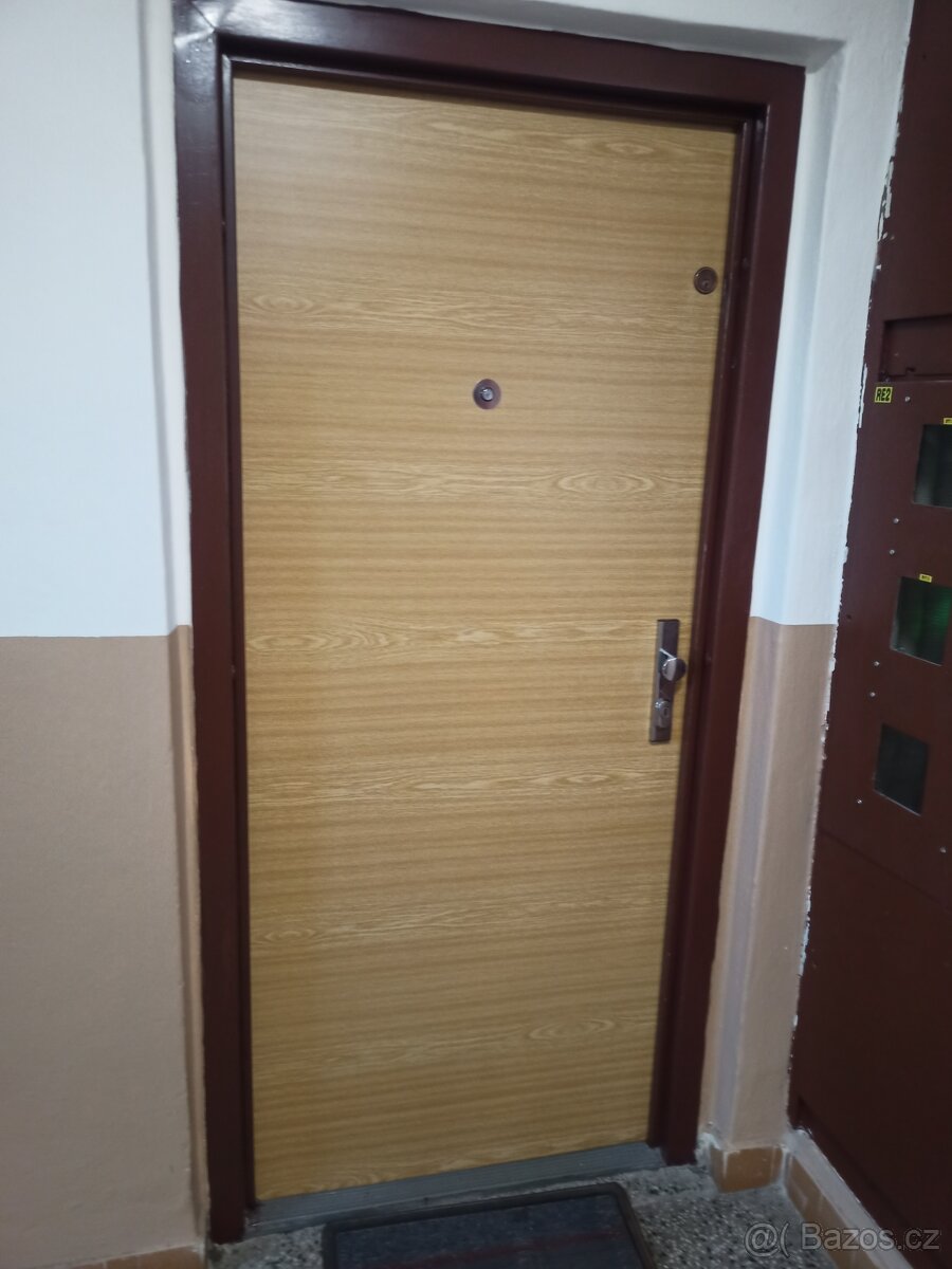 Prodám pravé, protipožární, vchodové dveře, velmi zachovalé. Z vnitřní strany zateplení koženkou. Bezpečnostní štítek R1+přídavný zámek v ceně - 6+6 klíčů.
