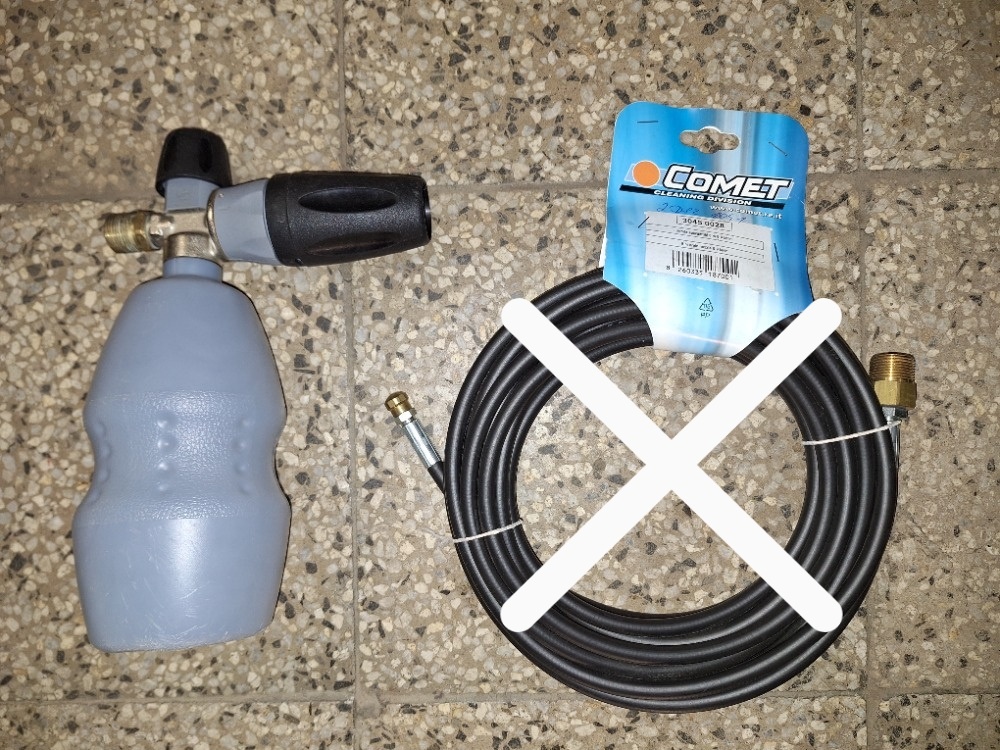 Používaný napěňovací nástavec MTM PF22 originál od firmy MTM Hydro Italy, 13 poloh regulace ředění, nastavení šíře paprsku, pro vapky s průtokem od 6,8l až 20l za minutu, max teplota vody 60 st., nerezová tryska 1,25mm (možnost dokoupení a výměna za menší 1,1 pro vapky do 100 bar tlaku), celomosazné robustní provedení, nádobka na 1L. Připojení na závit M 22x1,5mm. Cena 700Kč.