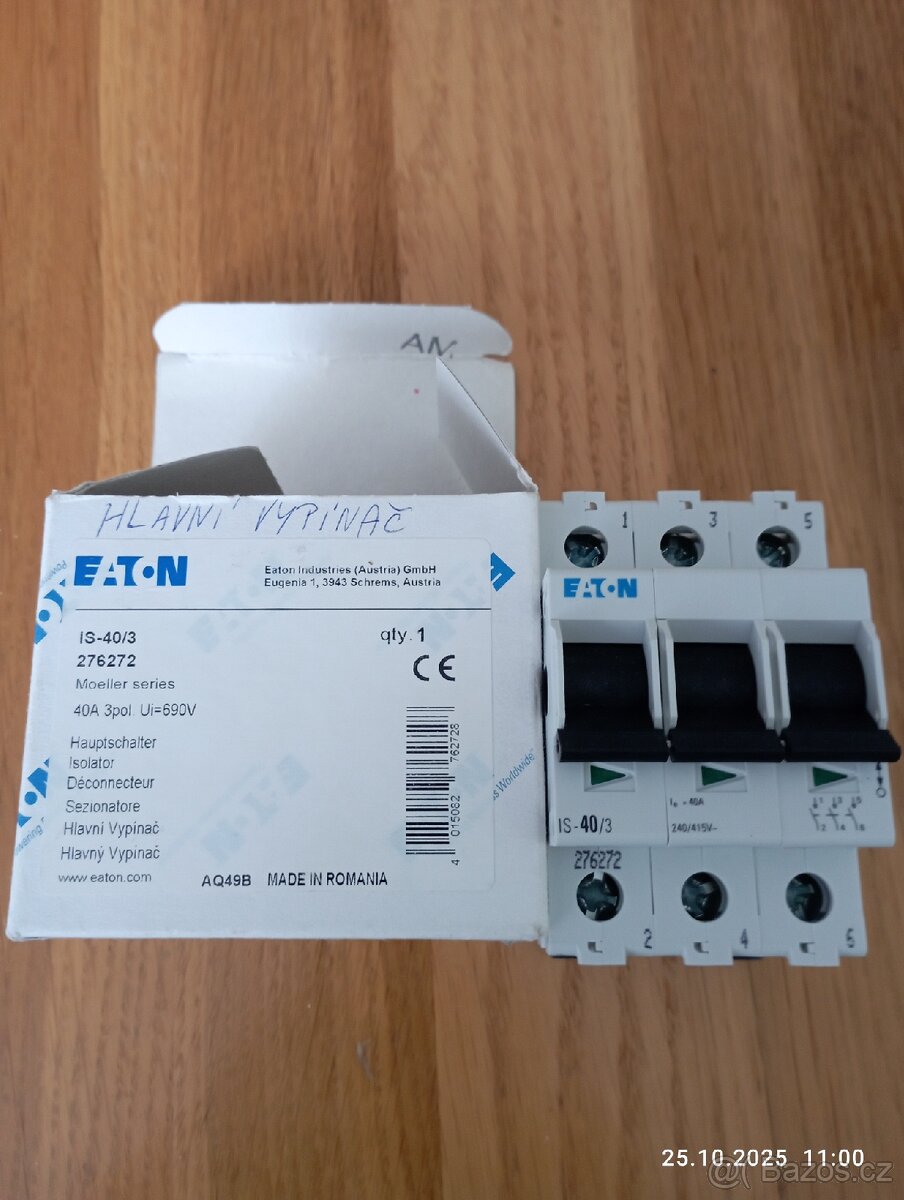 Prodám tento nový hlavní vypínač Eaton Is -40/3 viz foto cena 400 Kč volat na 737276878 email vakermanm@seznam.cz