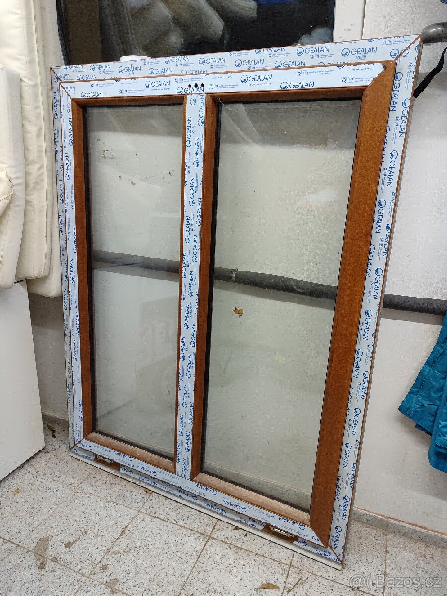 Nové plastove okno 122 x 160cm, dvojsklo, zlaty dub, vc. kliky a uchytu do zdi. POUZE VÝKLOPNÉ na ventilačku.