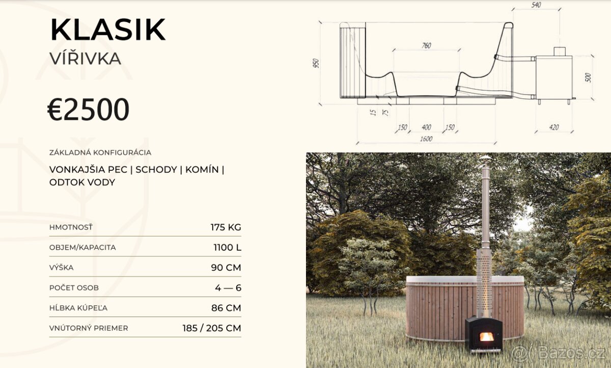 - Objem vody: cca 1100 litrů
