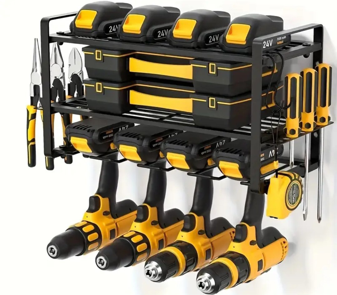 Dílenská polička (kovová) na 4 ks Aku nářadí.