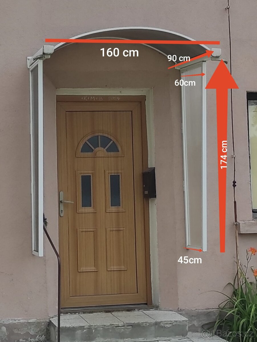 Stříška nad vstupní dveře včetně boků - míry viz. Foto - zánovní