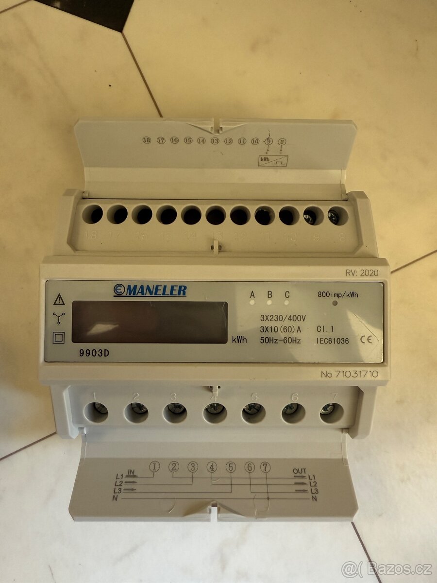 Prodám nový 3-fázový elektroměr Maneler 9903D.