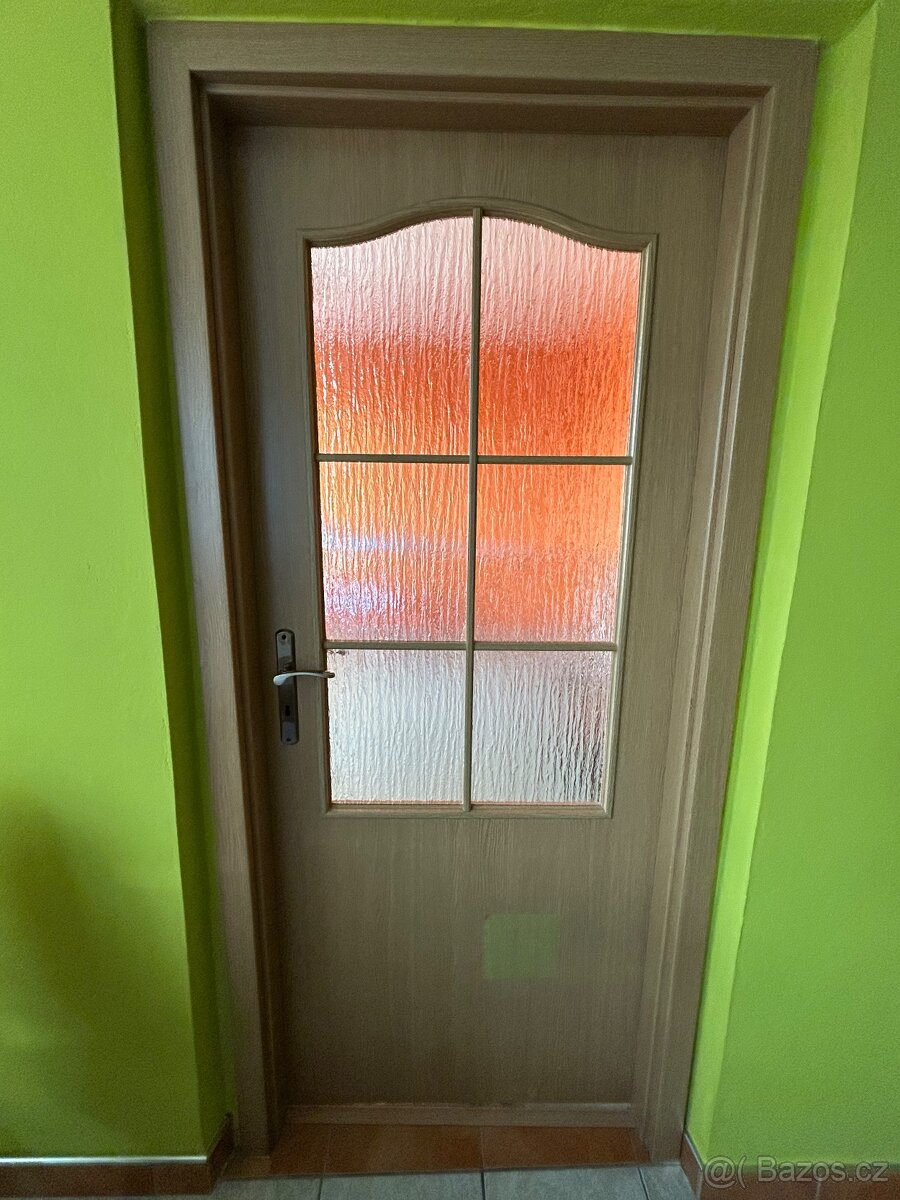 Poškozené dveře (díra pod přelepením). Za odvoz