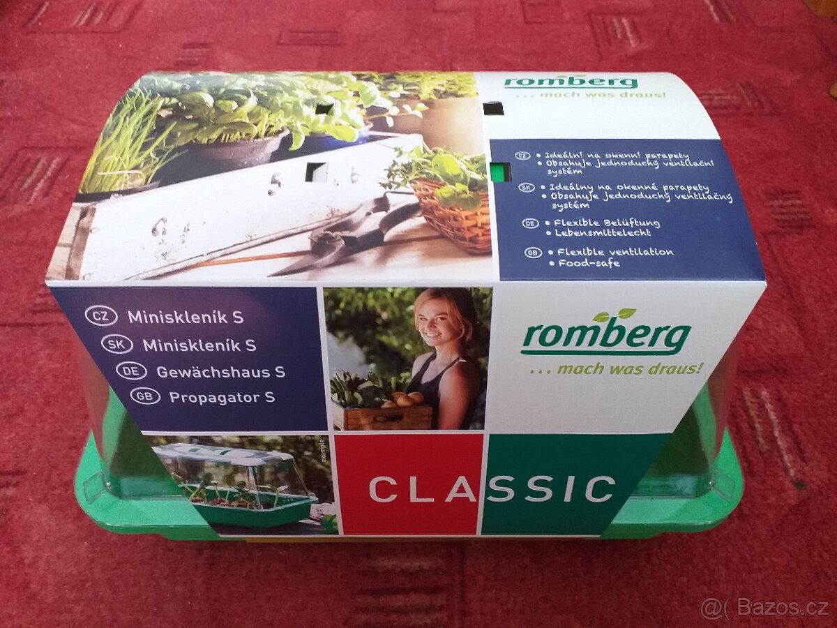 Prodám nerozbalené a nikdy nepoužité minipařeniště o velikosti S značky Romberg, plastové, s ventilací, na předpěstování patnácti rostlinek a o rozměrech 29 cm × 19 cm × 19 cm.
