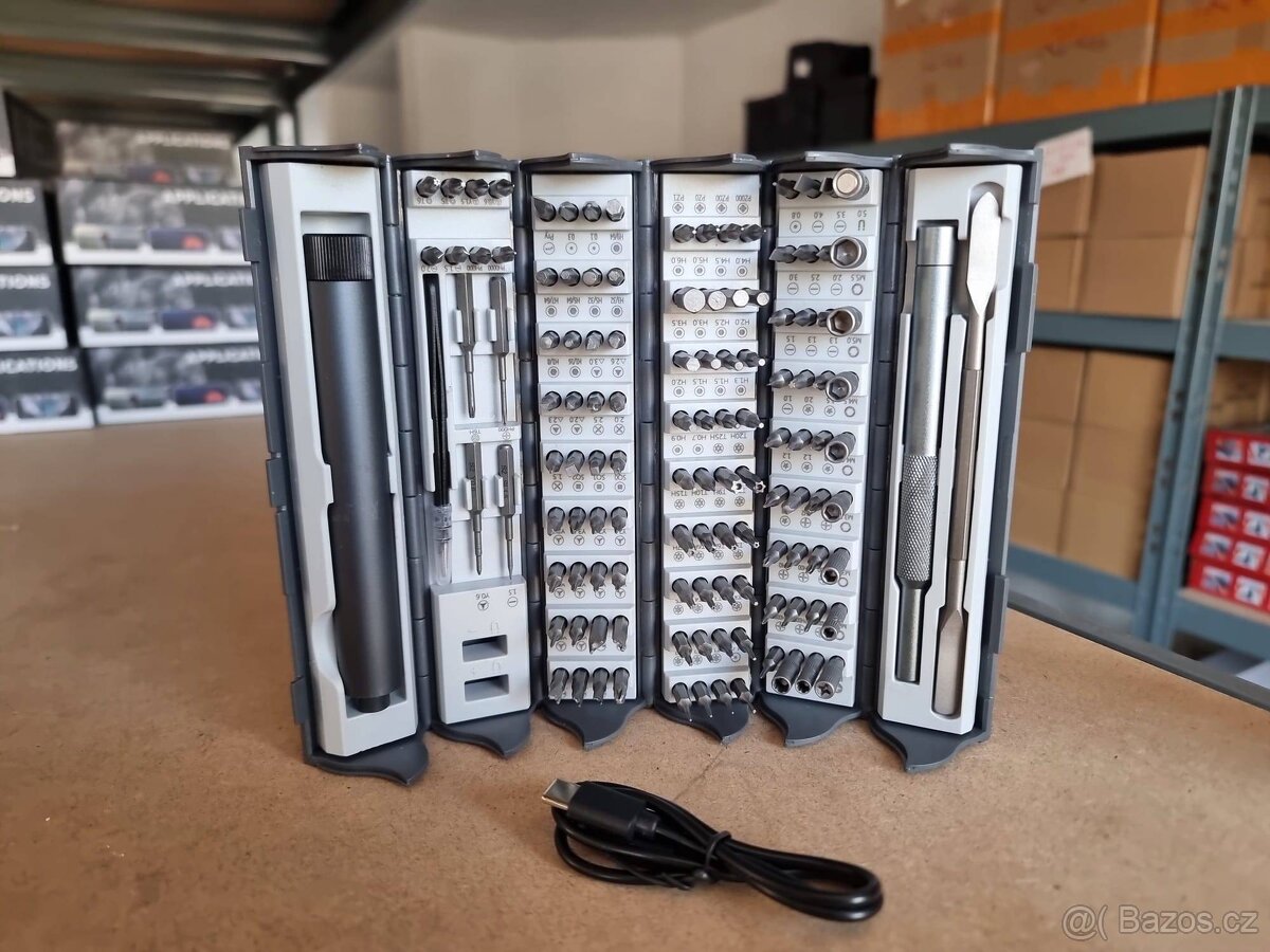 Prodám zcela nový elektrický šroubovák LSD009 s bohatým příslušenstvím. Vhodný hlavně pro opravy drobné techniky – telefony, notebooky, hodinky, brýle, ovladače a pod. Šroubovák je lehký, přesný a velmi dobře zpracovaný.