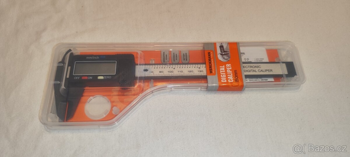 Posuvné měřítko, digitální šuplera s LCD displejem. - [10.1. 2026]Posuvné měřítko 150 mm, digitální LCD display, nové, nevyužité, přesnost 0,01 mm, jednotky měření (mm nebo palce), dobré odečítání z LCD displeje (velké číslice), nulování v každé pozici, včetně pouzdra a nové knoflíkové baterie CR2032 3V, materiál u ...